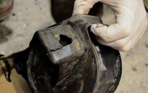 ترک یا پارگی در لاستیک دسته موتور هنگام بازدید چشمی.