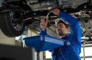 مکانیک با استفاده از دستگاه وکیوم یا باز کردن پیچهای هواگیری، روغن قدیمی را خارج می کند.