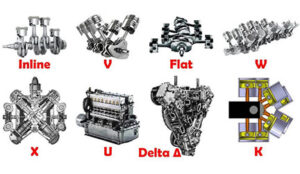 • سیلندر خطی: همه سیلندرها در یک ردیف قرار دارند (رایج در موتورهای چهار سیلندر).